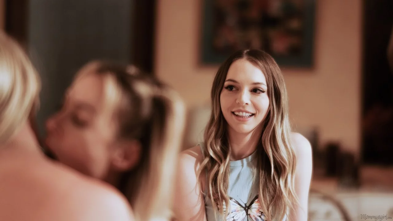 Блондинка средних лет занимается лесбийским сексом втроем с парой молоденьких девушек