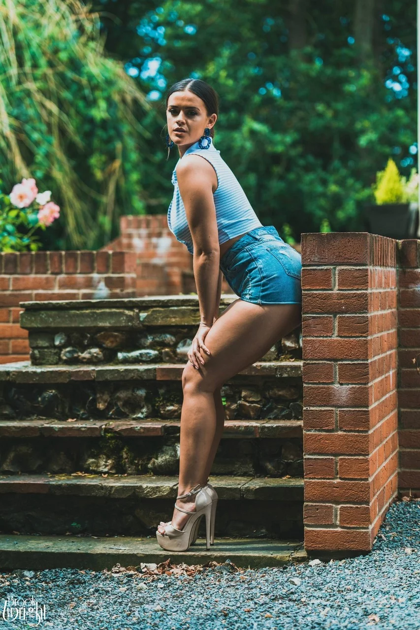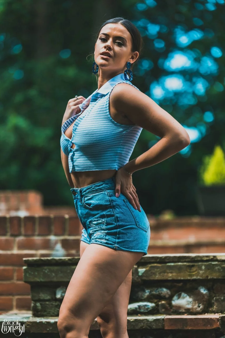 Британская модель Брук Райт раздевается до высоких каблуков во время съемки на открытом воздухе