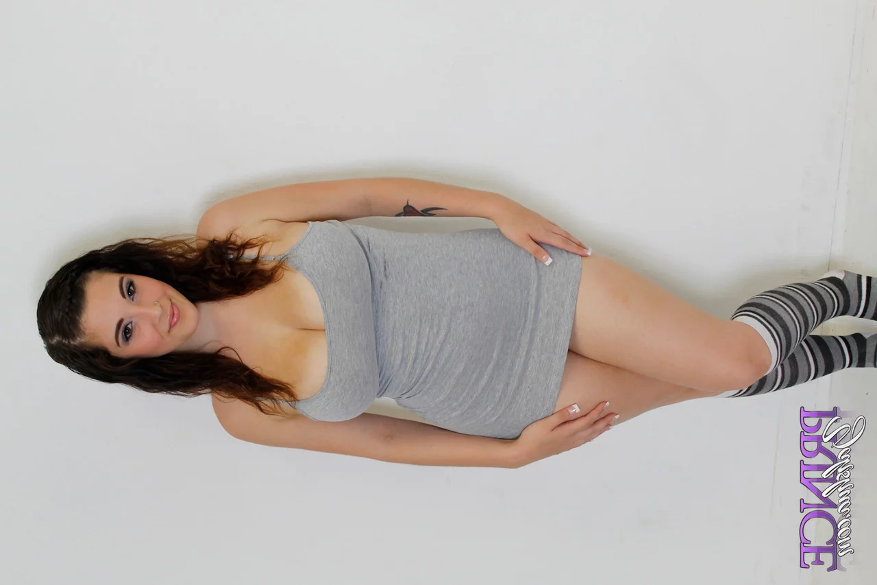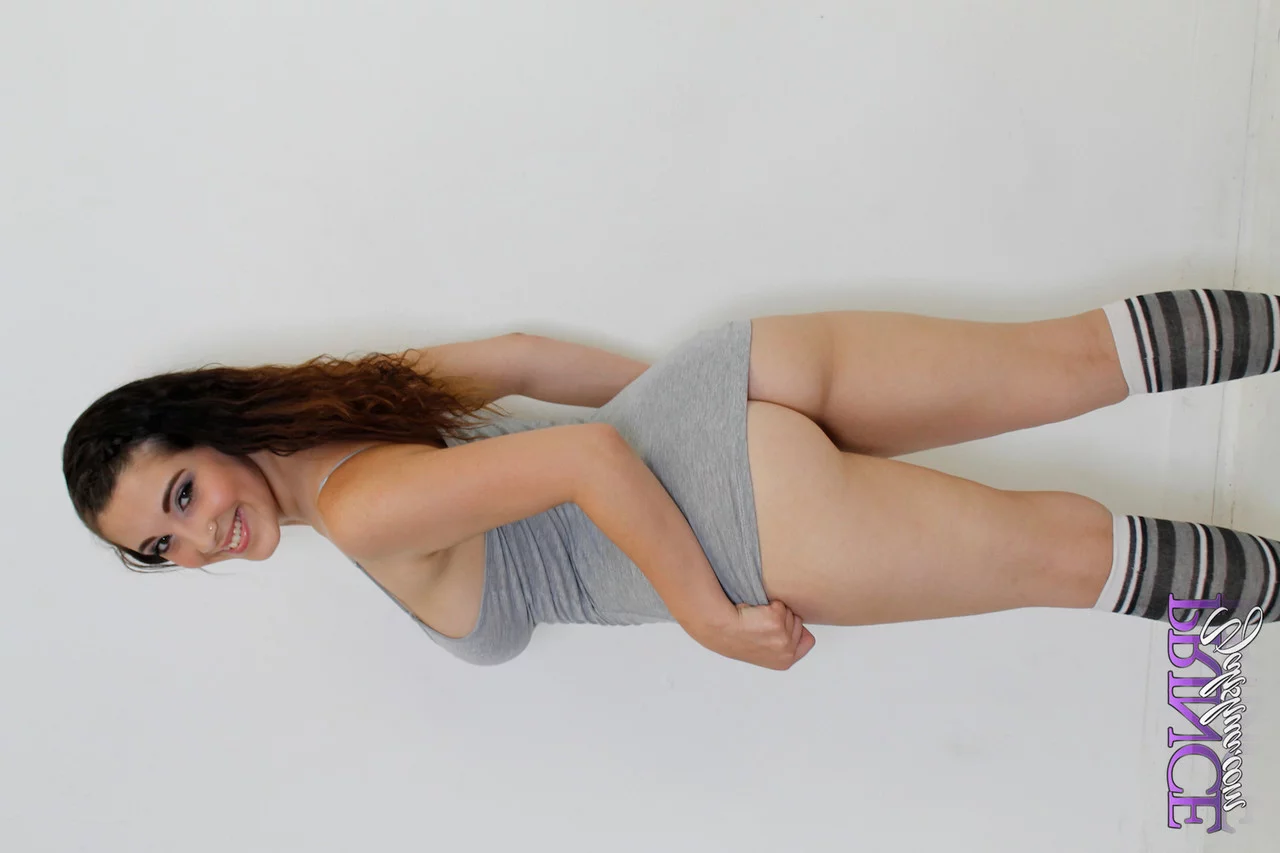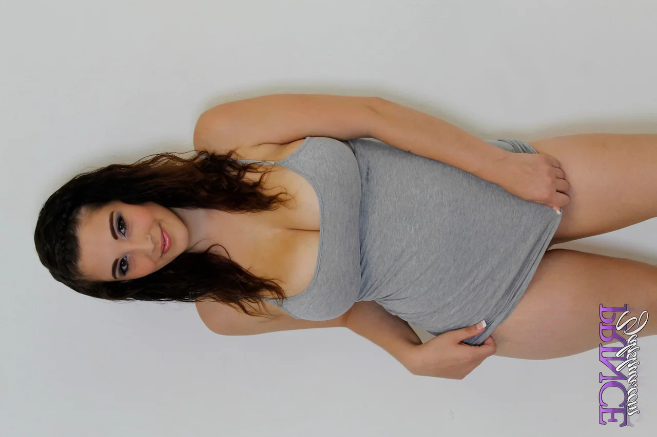 Цыпочка с большим сиськом хватает свою шикарную задницу, моделируя различные наряды