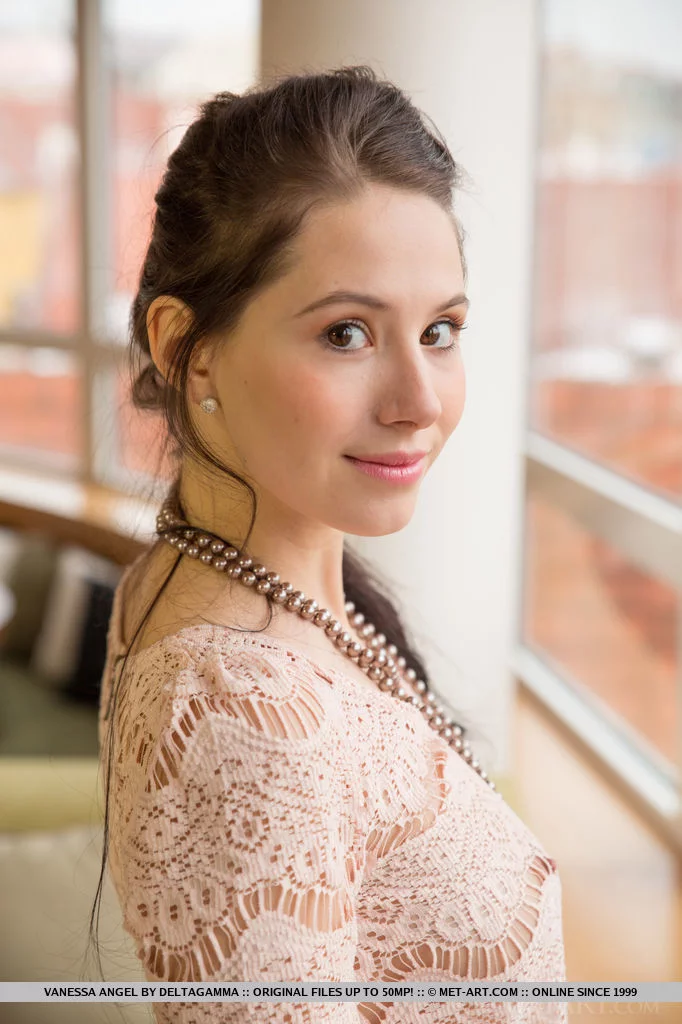 Модель гламур красотка Ванесса Ангел оголяя бритую киску и маленькие сиськи