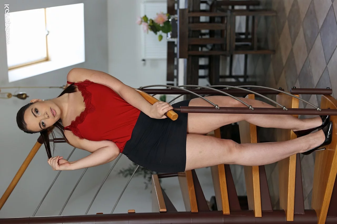 Молодая любительница София Ли обнажает свои большие сиськи, раздеваясь на каблуках