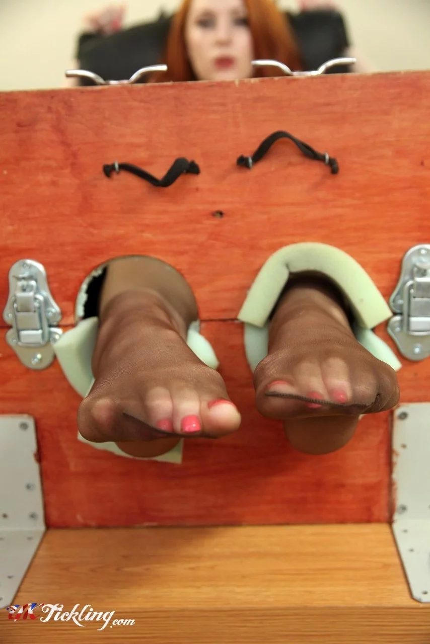 Натуральная рыжеволосая Софи Нова снимает каблуки, пока ее ноги в чулках
