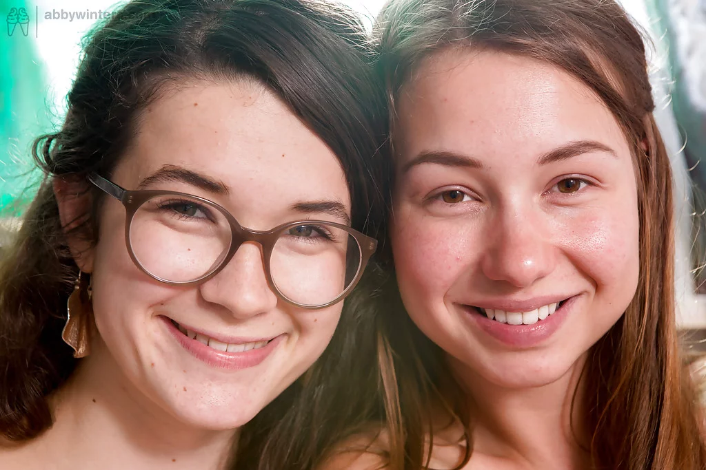 Натуральные лесбиянки Эмилия и Софи раздевают друг друга во время секса на кровати
