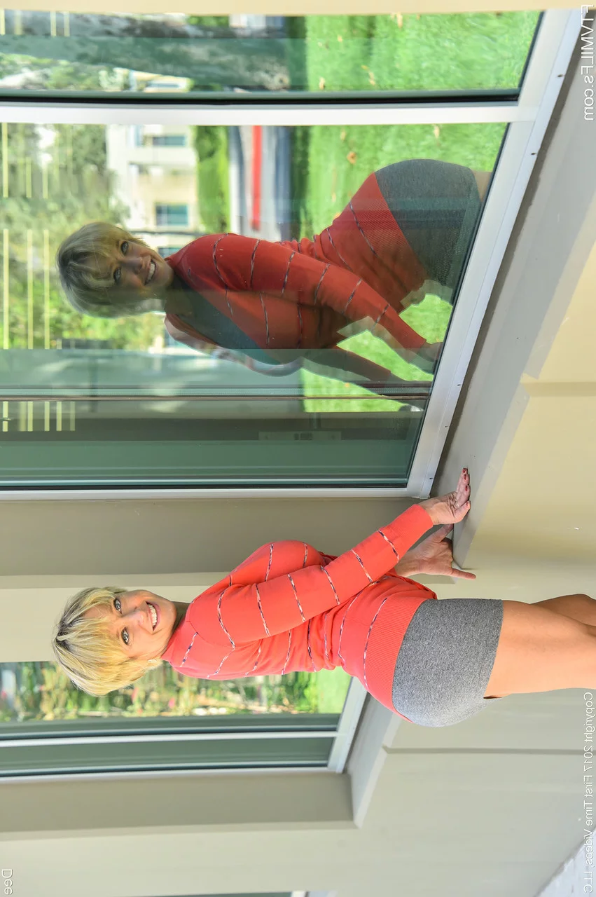 Пожилая милфа с короткой стрижкой показывает свою пизду и задницу, прежде чем обнажить свои сиськи