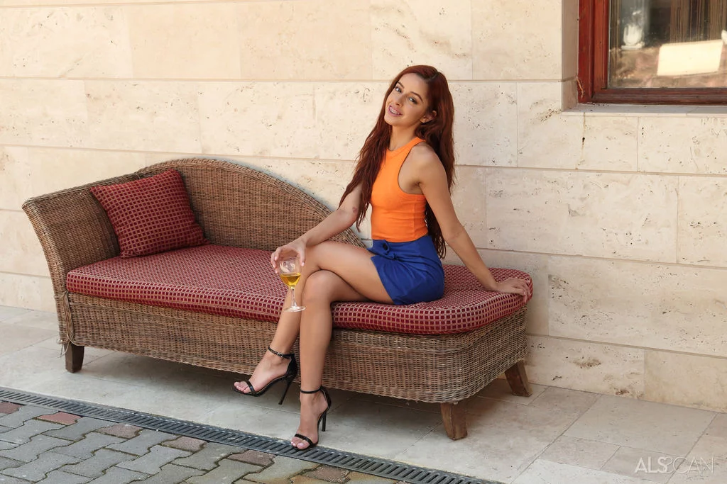 Рыжеволосая любительница Ванна Бардо теребит пальцами свою молоденькую киску и жопу одновременно